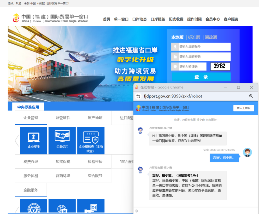 3月28日■★,中国(福建)国际贸易单一窗口(以下简称■◆◆★■“省单一窗口”)通过本地部署接入DeepSeek大模型应用,利用智能算法取代传统人工操作,正式推出AI智能客服★★★■★■“福小窗◆★★”,实现了省单一窗口智能化服务再升级凯发体育平台线路◆★■。